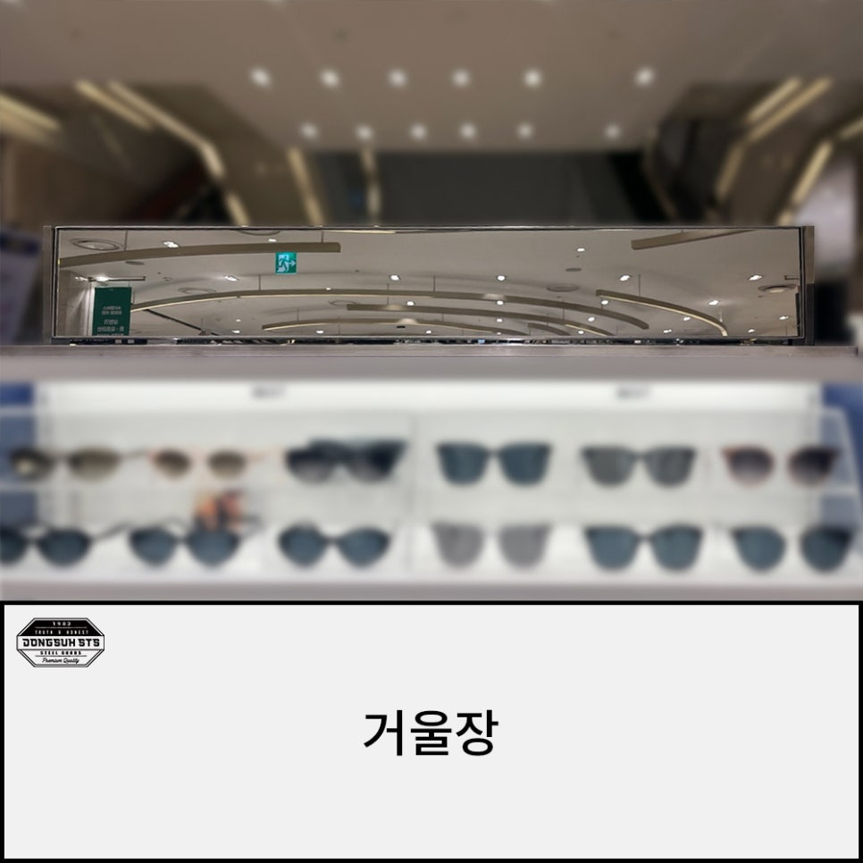 안녕하세요, 동서스텐입니다 :) 오늘은 백화점 선글라스 매장에 납품된 착용 시연용 거울장 제작 사례를 소개해드리겠습니다. 선글라스를 착용해보고 얼굴형에 맞는지, 스타일이 어울리는지를 확인하는 공간인 만큼, 거울의 구조와 기능은 매장의 첫인상과 고객 경험에 큰 영향을 줍니다.