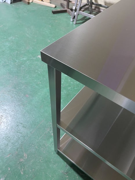 이번 작업대는 오랜 시간 동안 사용할 수 있도록 마감에도 신경을 썼습니다. 헤어라인(HL) 마감 처리된 상판은 고급스러운 외관을 유지하면서도 흠집이 잘 보이지 않아 실용적입니다. 또한, 소재 특유의 내구성과 청결함 덕분에 카페와 같은 위생이 중요한 공간에서 더욱 안심하고 사용하실 수 있습니다.