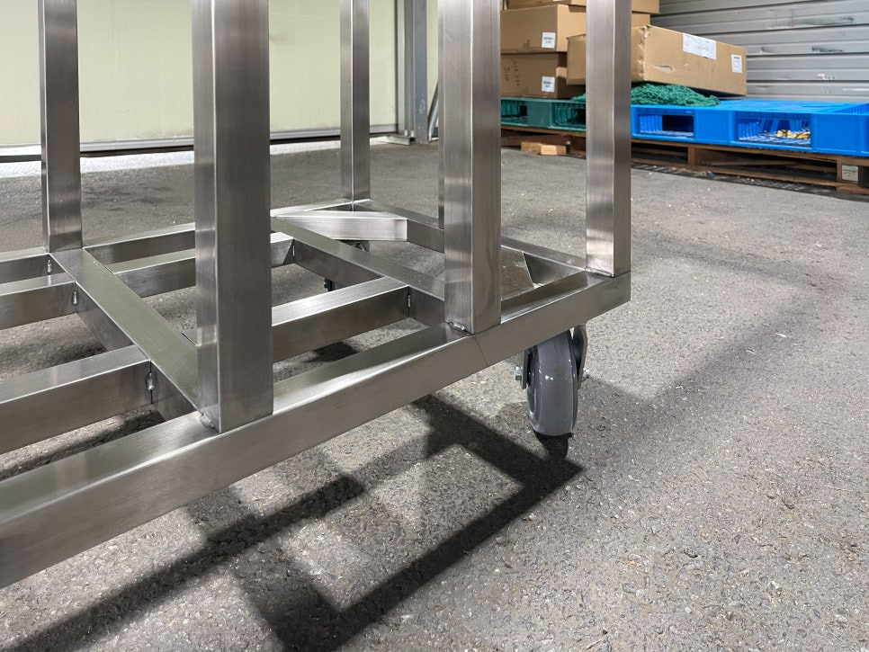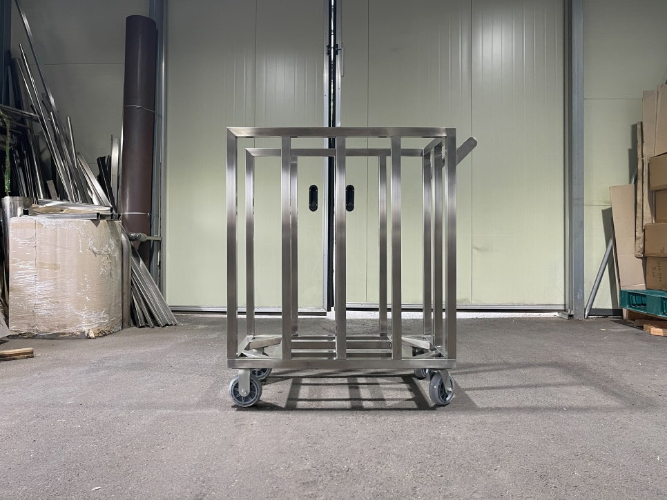 특히 이번 제작 과정에서는 고객님이 기존 철제 카트를 사용하면서 불편했던 점들을 개선하는 데에 중점을 두었습니다. 기존 제품은 무게를 버티는 데 한계가 있었고 녹 발생으로 관리가 까다로웠지만, 스테인리스로 교체하면서 내구성과 위생성 문제를 동시에 해결할 수 있었습니다. 더불어 프레임의 안정적인 구조 덕분에 작업 환경에서도 훨씬 신뢰감 있게 사용할 수 있도록 완성되었습니다.