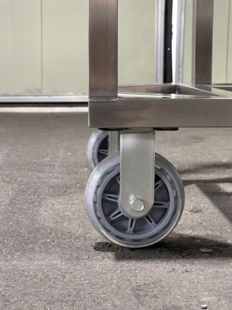 이번 제작에서 캐스터는 고객님께서 직접 별도로 구매하시기로 하여, 저희는 카트의 프레임 부분 제작에 집중하였습니다. 프레임은 안정적인 구조와 깔끔한 용접 마감으로 마무리하였으며, 후에 고객님이 준비하신 캐스터를 장착하여 바로 사용 가능하도록 하였습니다.