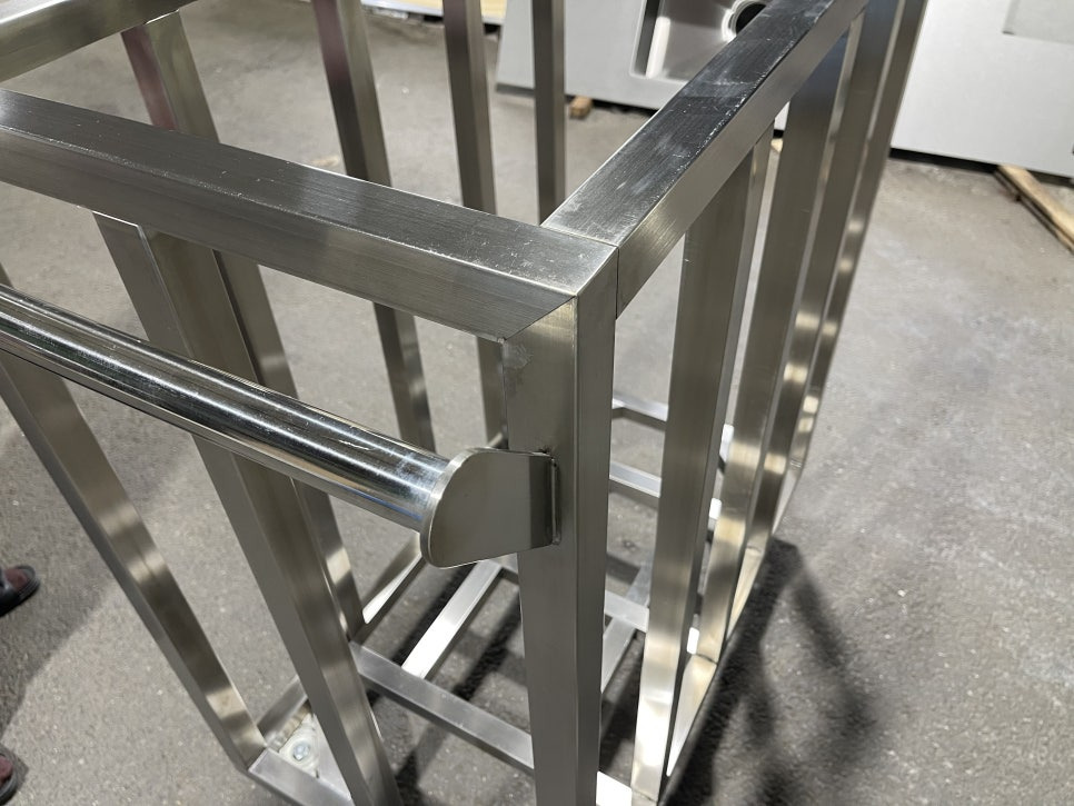 완성된 스테인리스 카트 프레임은 강도와 내구성을 갖추면서도 깔끔한 외관까지 만족시켰습니다. 무엇보다 철제 제품에 비해 녹과 부식 걱정이 없다는 점이 고객님께서 가장 만족해하신 부분이었습니다. 또한 손잡이 부분의 원형 파이프 처리 덕분에 실제 사용 시에도 훨씬 편안하다는 긍정적인 피드백을 주셨습니다.